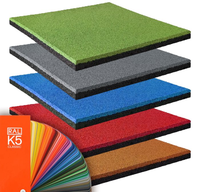 • Резиновая плитка 500х500х30 мм, двухслойная, цвет по RAL